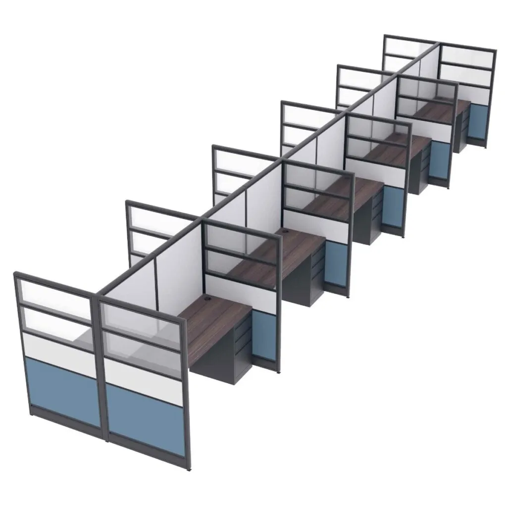 10-Person Cubicle Workstations | SAPslim Cubicle System | Sapphire Cubicle System | 5x6x65″H2-Person Cubicle Workstation | Laminate Gallery Panels | Sol Series | 6x6x52″-39″H