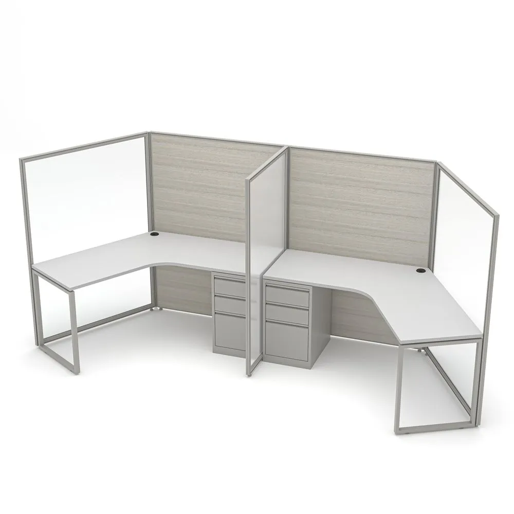 2-Person Cubicle Workstations and Partitions | SAPslim Cubicle Collection | 4 x 4 x 65″H2-Person Cubicle Workstation | Laminate Gallery Panels | Sol Series | 6x6x52″-39″H