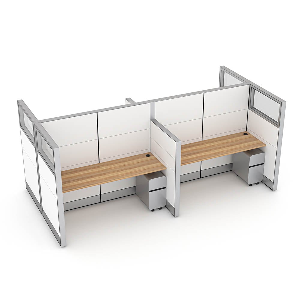 4-Person Office Cubicle Workstations | SAPslim Cubicle Collection | 5 x 5 x 65″H2-Person Cubicle Workstation | Laminate Gallery Panels | Sol Series | 6x6x52″-39″H