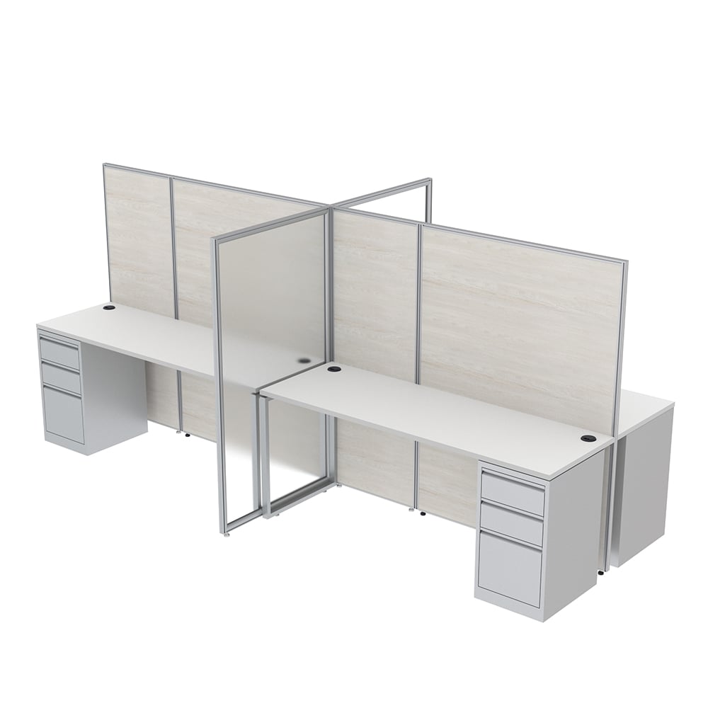 4-person Modern U-Shaped Cubicle Walls and Workstations | SAPslim Cubicle System | 2 x 4 x 65″H2-Person Cubicle Workstation | Laminate Gallery Panels | Sol Series | 6x6x52″-39″H