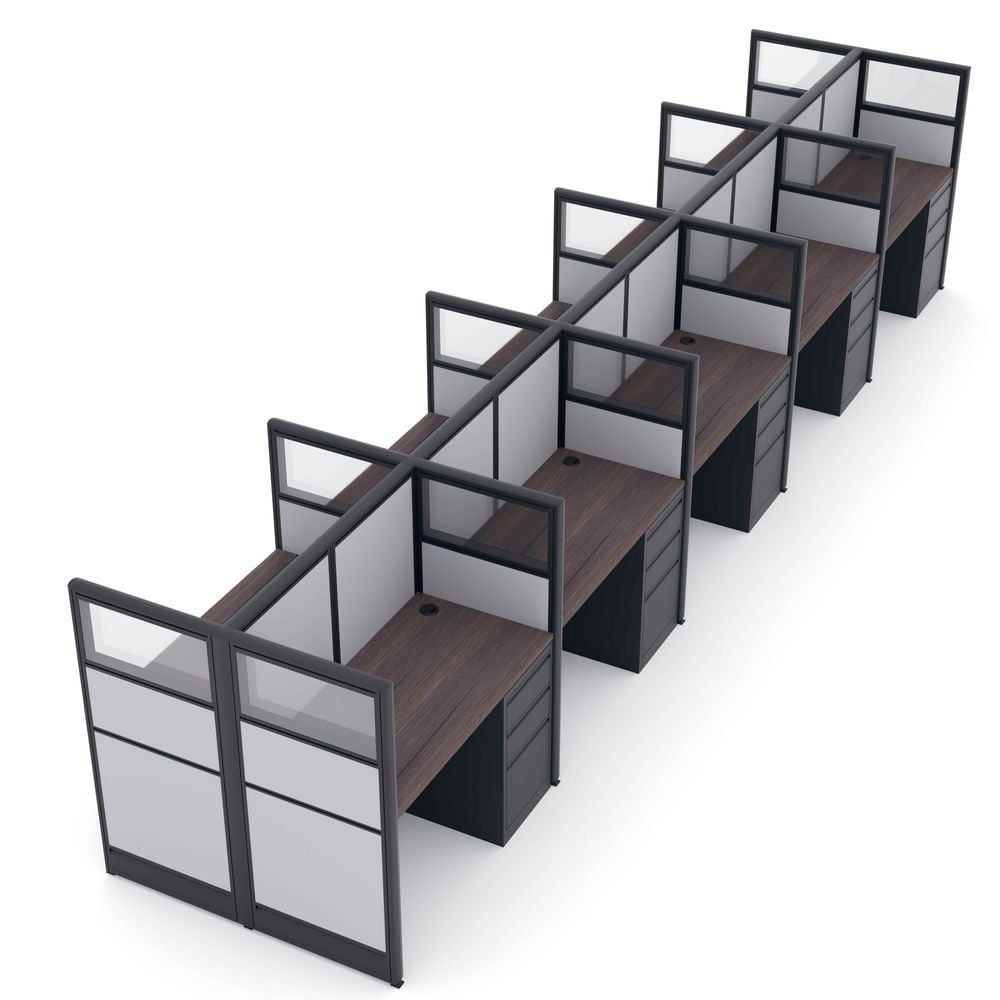 6-Person Call Center Cubicles | SAPslim Cubicle Collection | 6x5x65″H2-Person Cubicle Workstation | Laminate Gallery Panels | Sol Series | 6x6x52″-39″H
