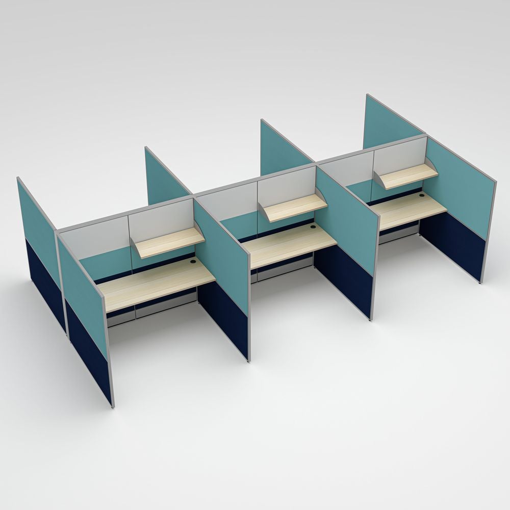 4-Person Modern Cubicle Workstations With Storage | Call Center Cubicles | SAPslim Cubicle Collection | 3 x 6 x 65″H2-Person Cubicle Workstation | Laminate Gallery Panels | Sol Series | 6x6x52″-39″H