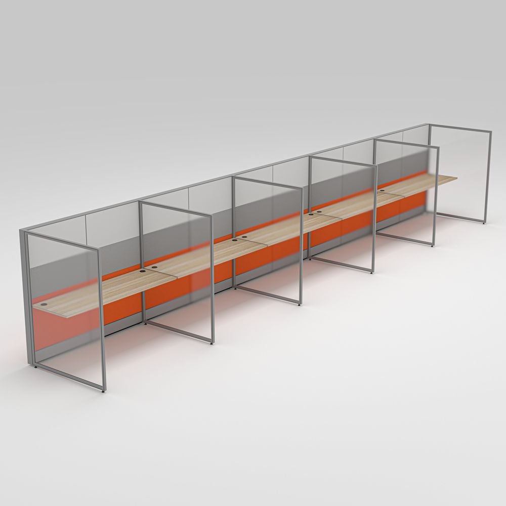 5-Person Call Center Cubicle Workstations | SAPslim Cubicle System | Sapphire Cubicle System | 6x4x65″H2-Person Cubicle Workstation | Laminate Gallery Panels | Sol Series | 6x6x52″-39″H