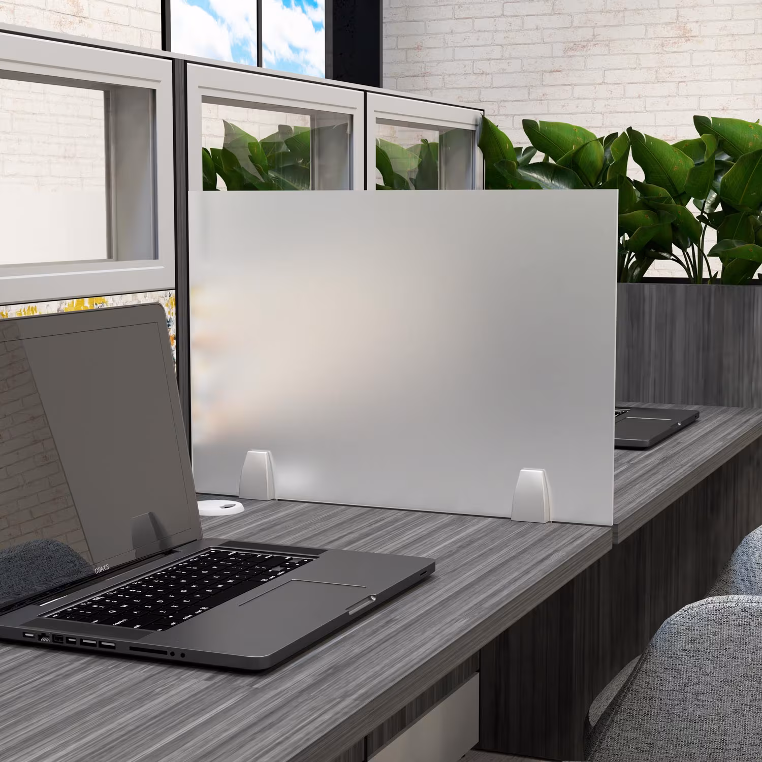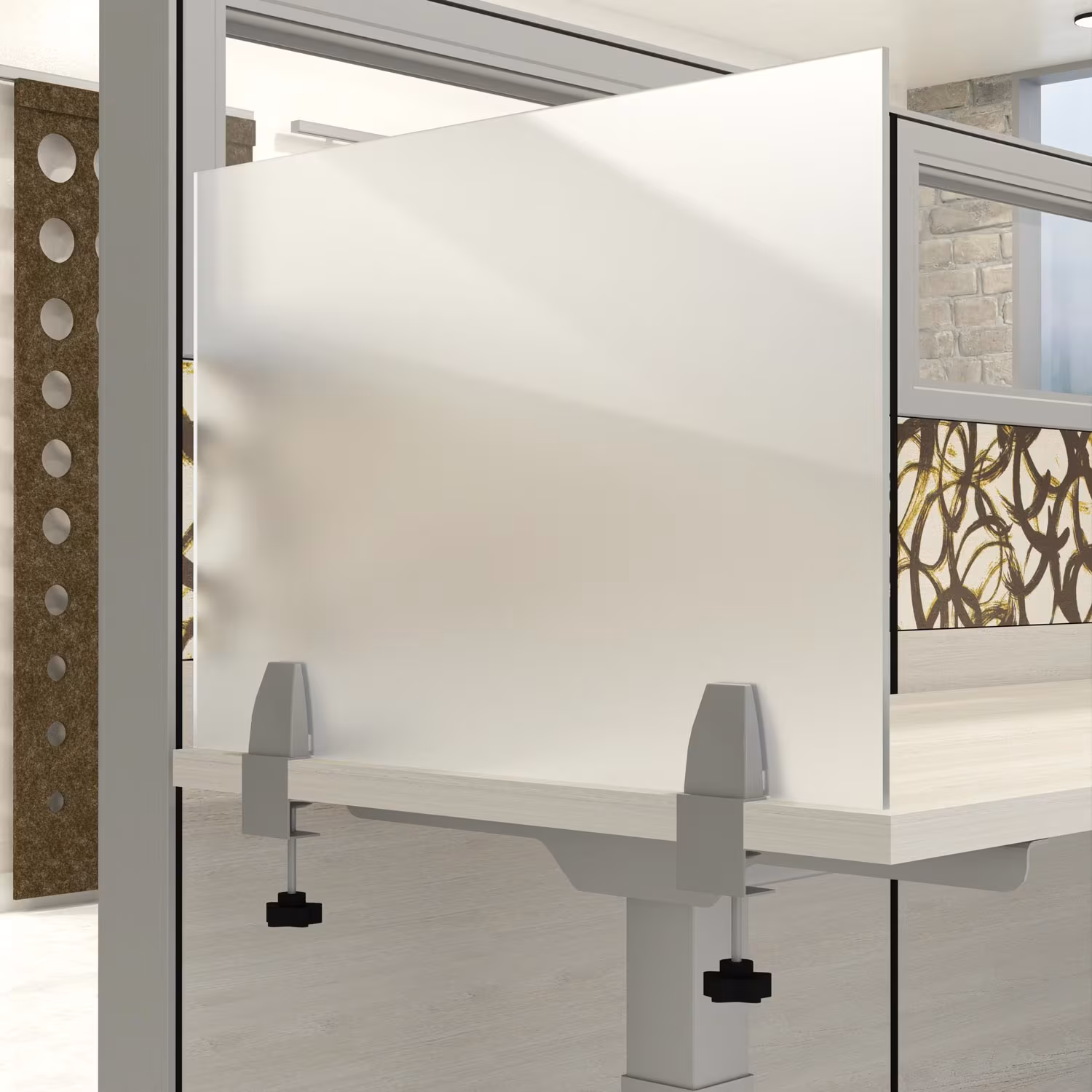 Acrylic Privacy Screens 12″ High | Clear or Frosted | eSCAPE Privacy Solutions2-Person Cubicle Workstation | Laminate Gallery Panels | Sol Series | 6x6x52″-39″H