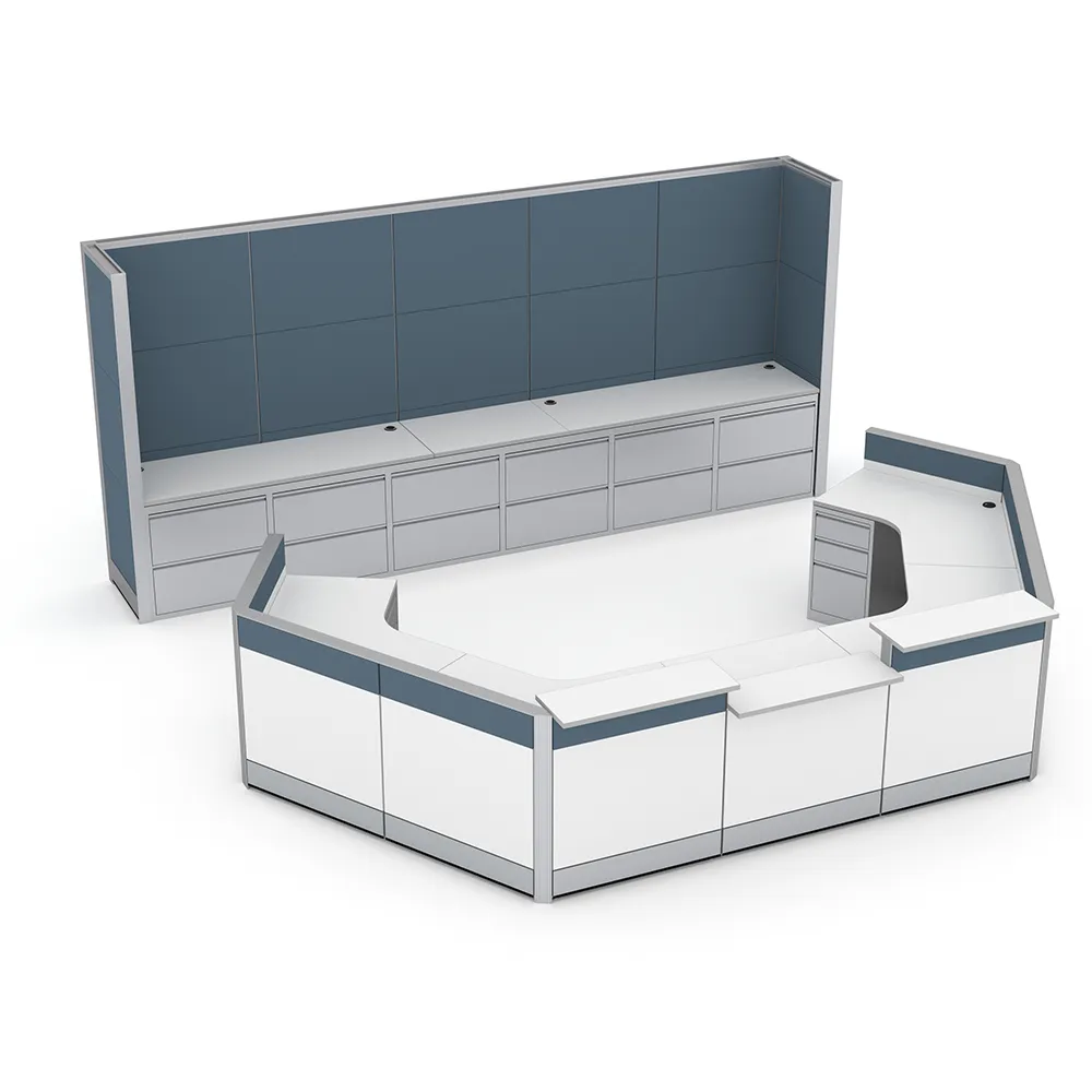 Nurses Station U-Shaped Reception Station With Storage Wall | ADA Compliant | Sapphire Cubicle And Sapphire Wall System | 8x15x39H-32H2-Person Cubicle Workstation | Laminate Gallery Panels | Sol Series | 6x6x52″-39″H