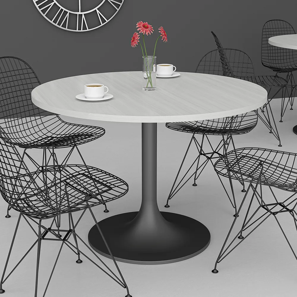 4-Person Meeting Room Table with Round Metal Base | Harmony Conference Series | 4′ Diameter2-Person Cubicle Workstation | Laminate Gallery Panels | Sol Series | 6x6x52″-39″H