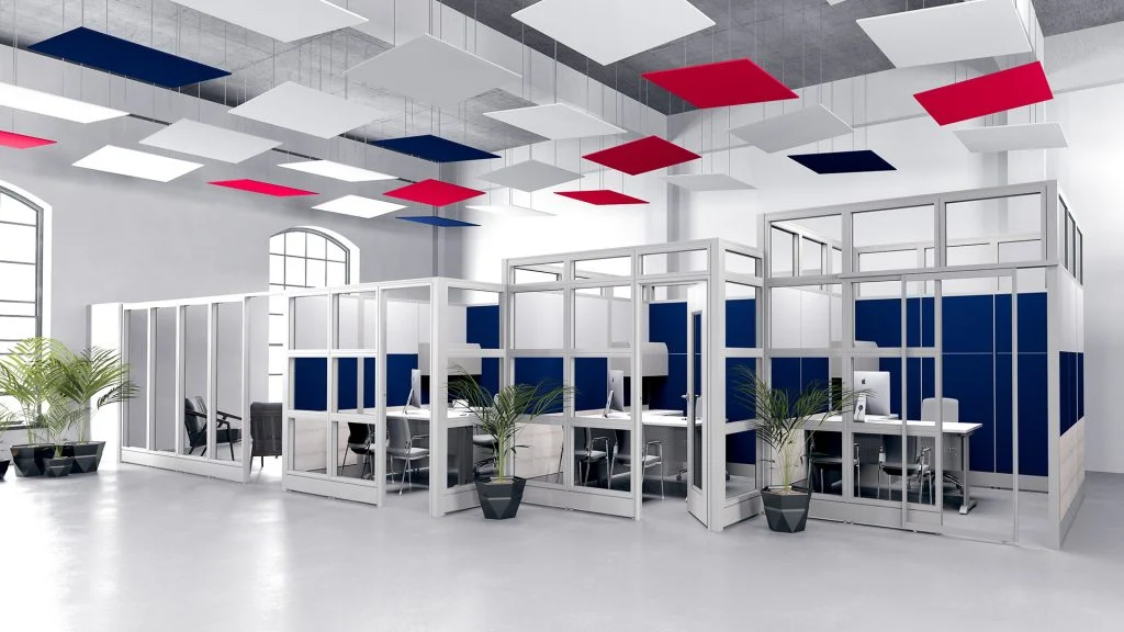 Likewise, the Sapphire Wall System offers floor-to-ceiling demountable and modular panel walls. This completely customizable system allows you to create offices, conference rooms, room dividers, and partition walls with glass panels from floor to ceiling. Even add locking doors to your private offices. Remember the color scheme rules for modern office space design from before; no bright colors, stick to black, white, silver, or gray.