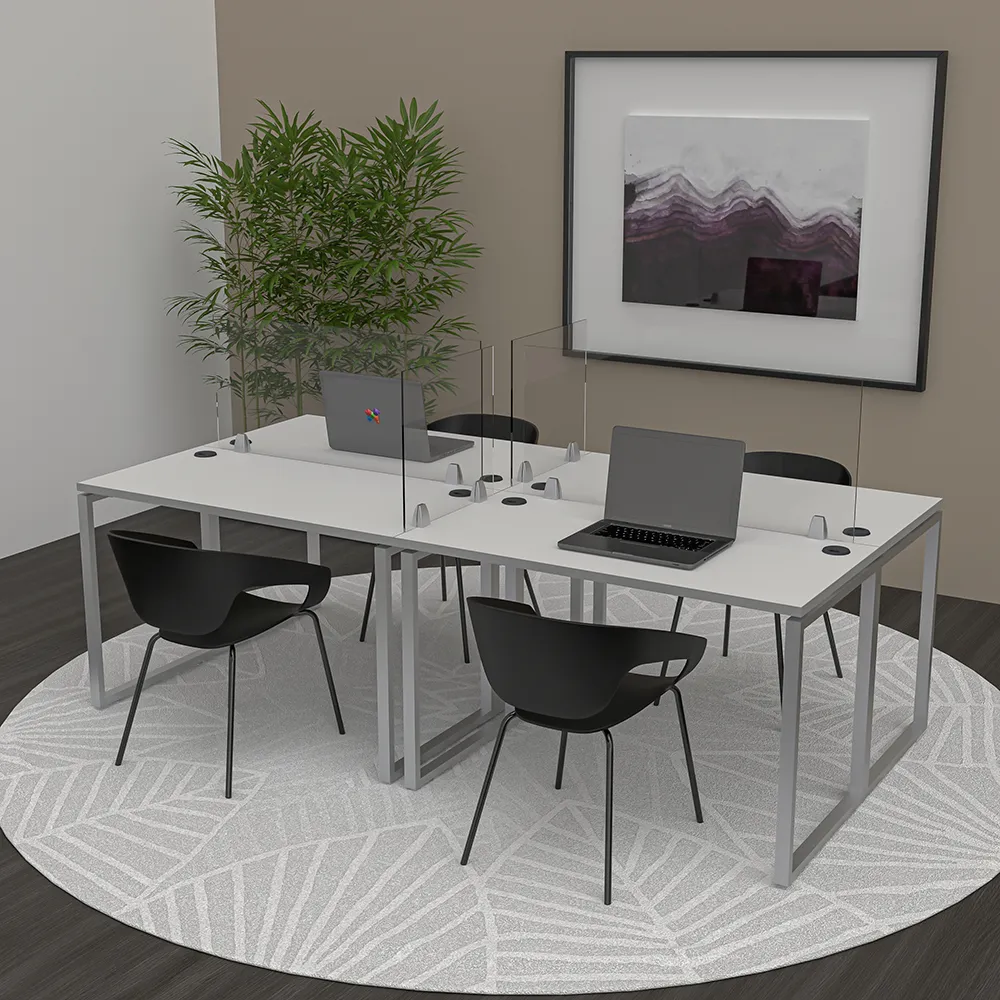 The permanent edge clamp design ensures the screen remains securely in place once installed, making it a dependable choice for high-traffic or long-term setups. The panel’s clean lines and modern finish integrate easily with existing office furniture, offering a visually subtle but highly functional addition to any professional setting.