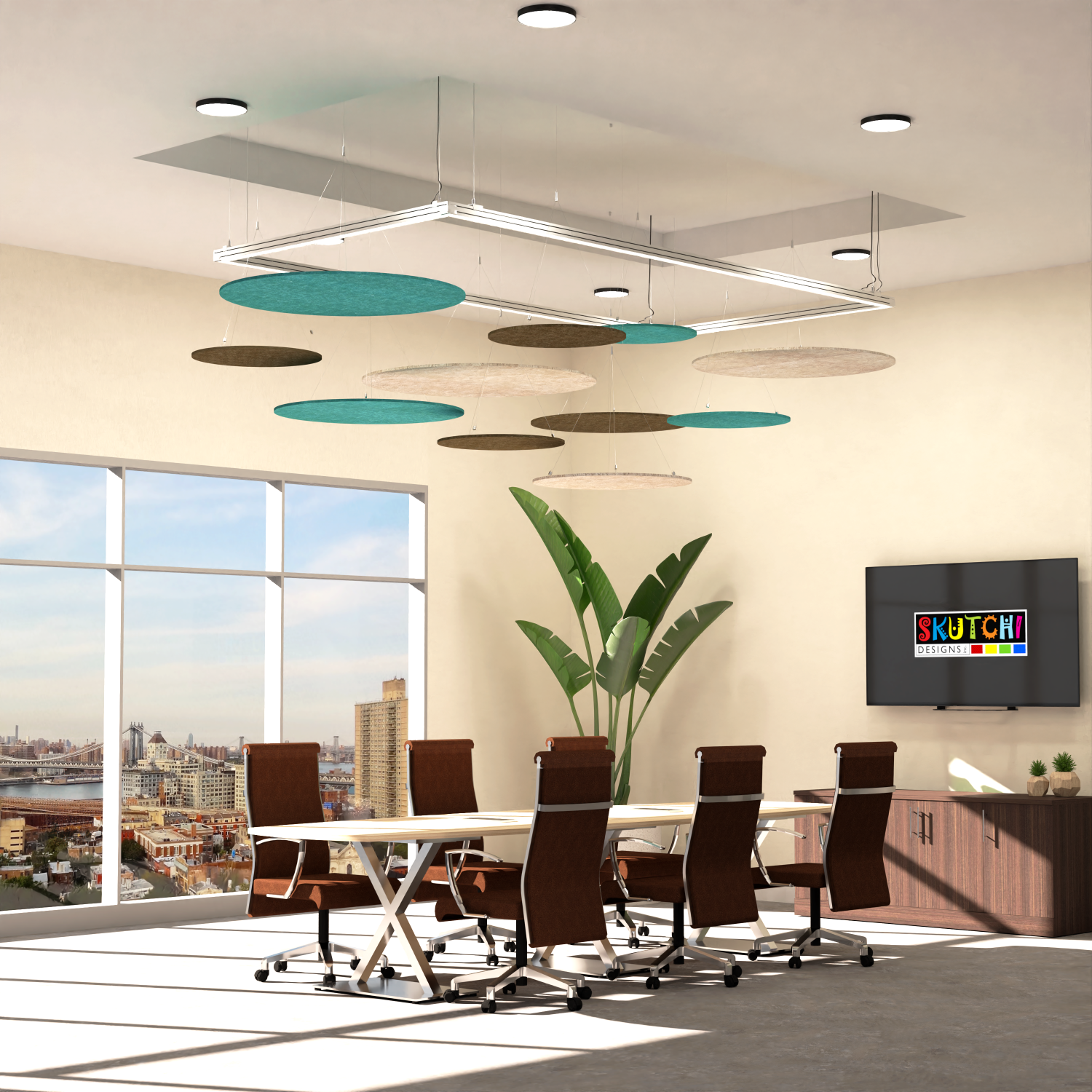Perfect for build-your-own ceiling designs, these panels can be installed as standalone accents or arranged in custom groupings to form full ceiling clouds or patterned acoustic arrays. Their circular form complements a variety of architectural styles and is particularly effective in softening the look of exposed ceilings or hard surfaces found in offices, classrooms, lobbies, cafés, and collaborative environments.