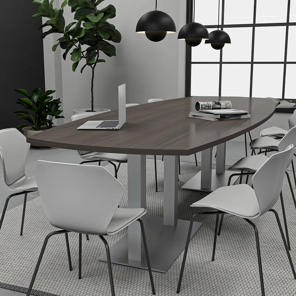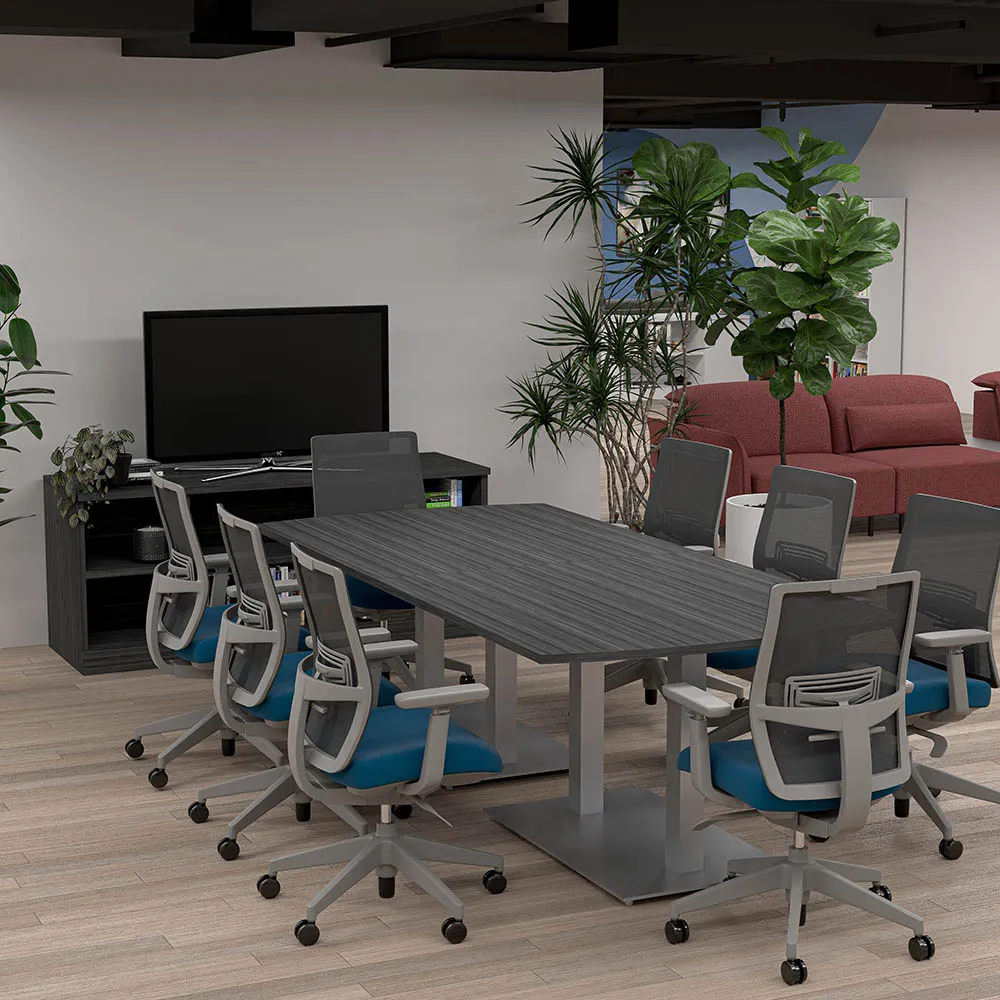 10-Person Racetrack Conference Table with Metal Bases | Harmony Conference Series | 10′ Racetrack Conference Table2-Person Cubicle Workstation | Laminate Gallery Panels | Sol Series | 6x6x52″-39″H