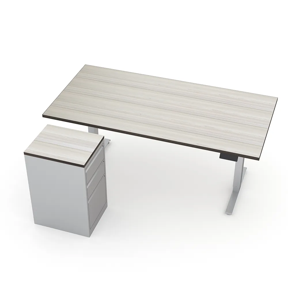 Quantum Series Rectangle Electric Sit-Stand Desk with Pedestal | 36″ x 72″ | 8 Laminate Options2-Person Cubicle Workstation | Laminate Gallery Panels | Sol Series | 6x6x52″-39″H