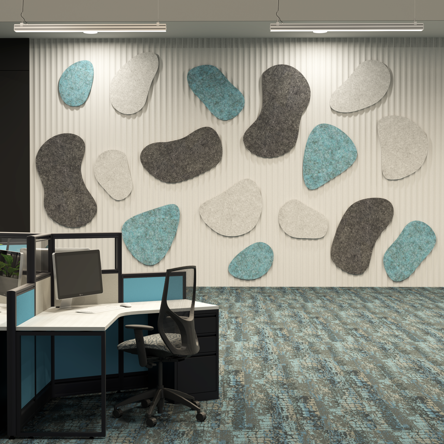 Transform your space with the Pebble Acoustic Wall Art Panels from SKUTCHI Designs Inc. Inspired by the smooth, organic forms of river stones, these panels blend modern aesthetics with superior acoustic performance to create environments that are both visually striking and acoustically balanced.