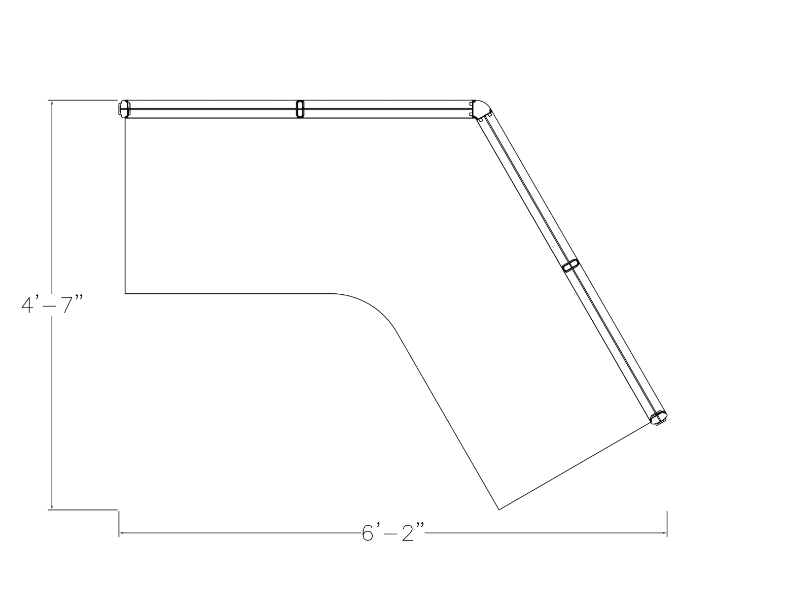 - Overall Footprint Size: 6’2″W x 4’7″D x 65″H