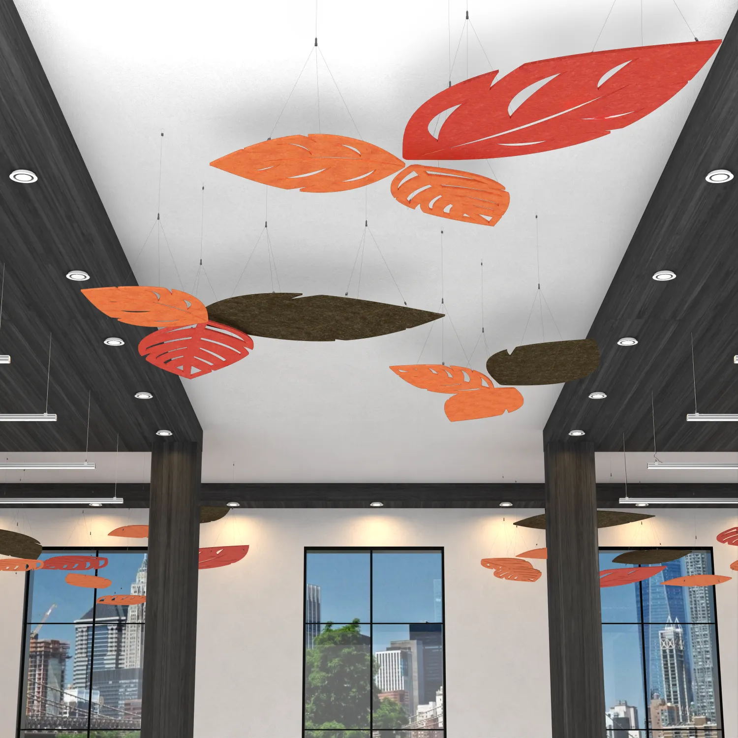 Set of 9 Acoustic Ceiling Panels | Leaf Shaped | Mixed Sizes and Colors2-Person Cubicle Workstation | Laminate Gallery Panels | Sol Series | 6x6x52″-39″H
