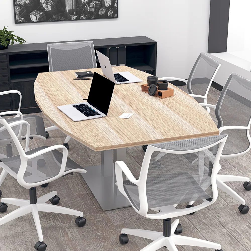 6-Person Boat-Shaped Conference Table with Metal Base | Harmony Conference Series | 6′ Table2-Person Cubicle Workstation | Laminate Gallery Panels | Sol Series | 6x6x52″-39″H