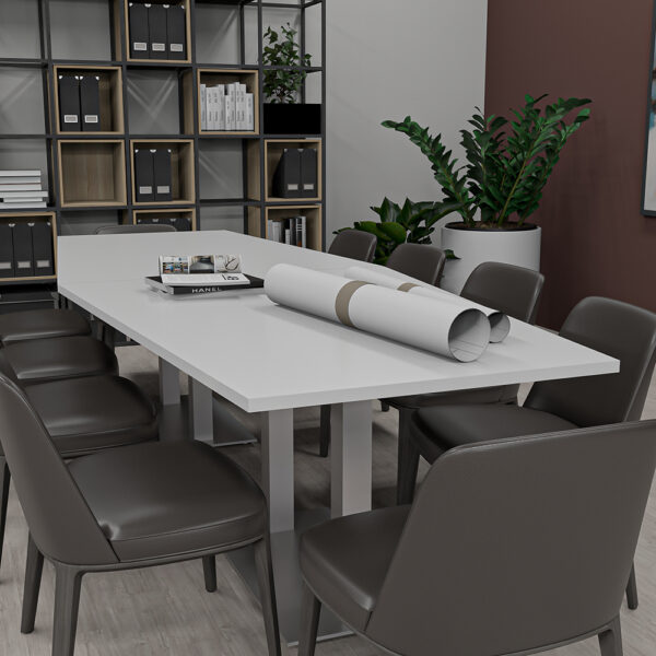 Our Harmony Series features modern conference tables designed to look sleek and stylish for any board room or meeting room. Because our conference tables are commercial-grade and constructed from eco-friendly materials, they make them one of our top-selling products. You can choose from various options such as shape, size, bases, laminates, and data/electric modules.