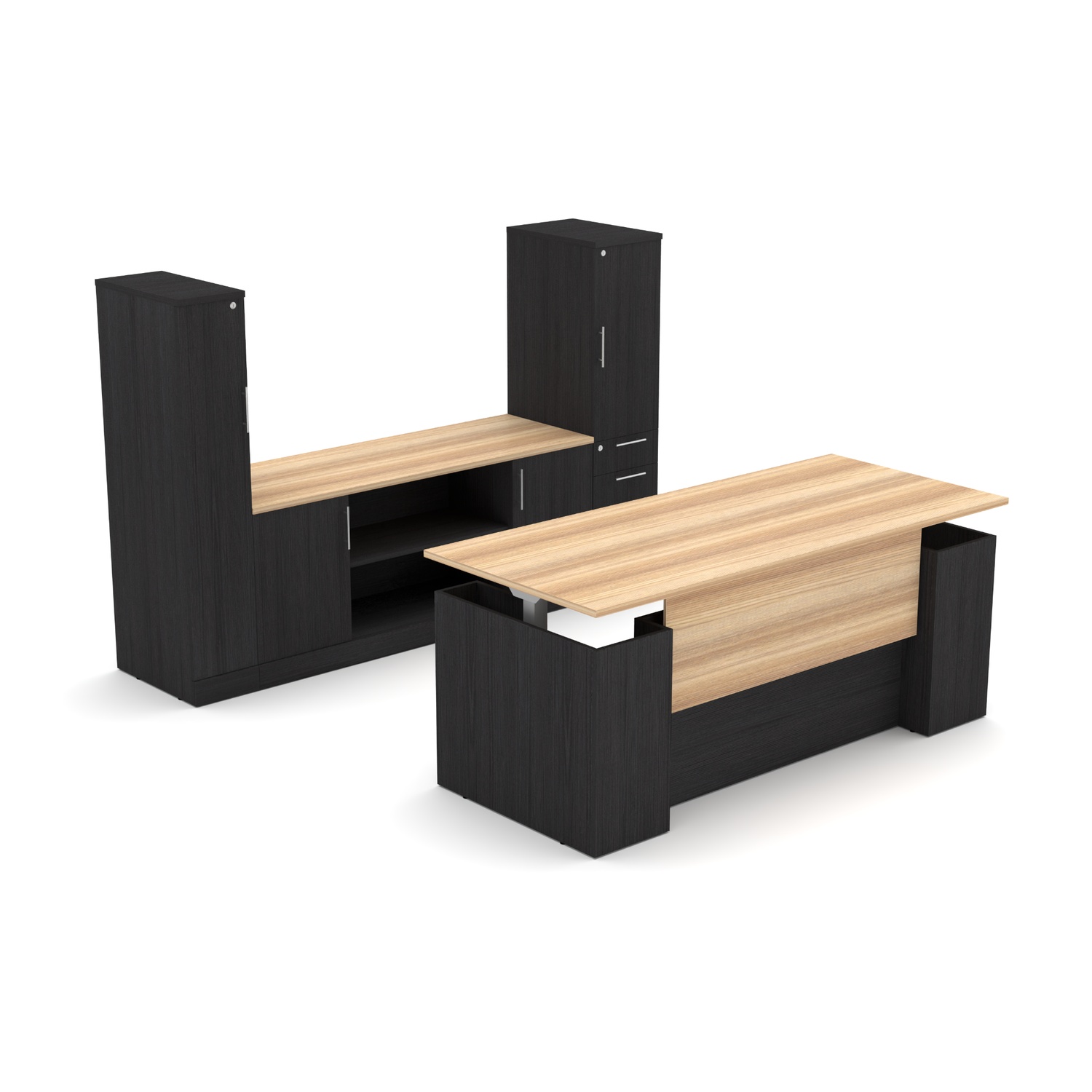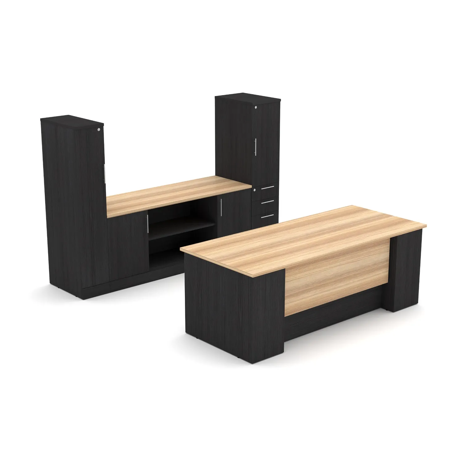 Modern Executive Workstation Desk with Credenza and Storage Towers