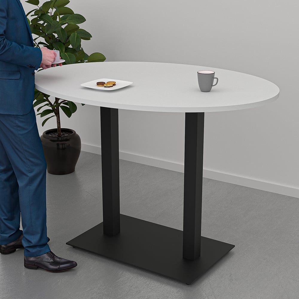 Large Bistro Height Office Table | 45″x60″ Standing Height Meeting Table With Double Post Base | Harmony Series Office Table | Available In 7 Shapes