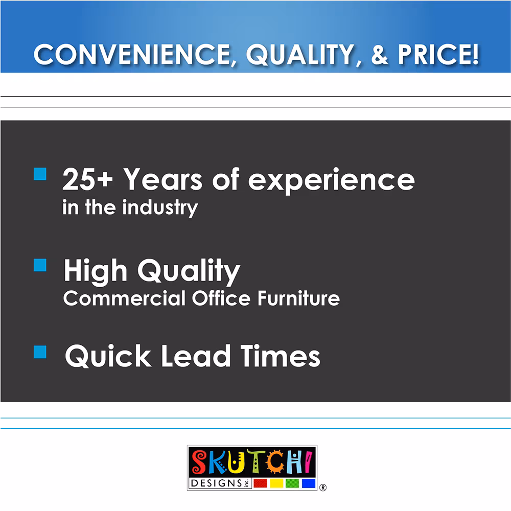 Choose from over 20 commercial-grade laminate colors to coordinate with any SKUTCHI system or existing office furniture.