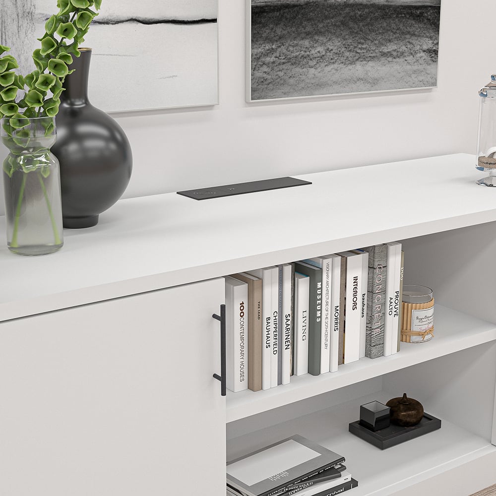 This office credenza features an open (doorless) design. It offers plenty of shelf space to showcase or store whatever is needed. Perfect for displaying personal mementos, books, plants, pictures, or whatever you see fit.