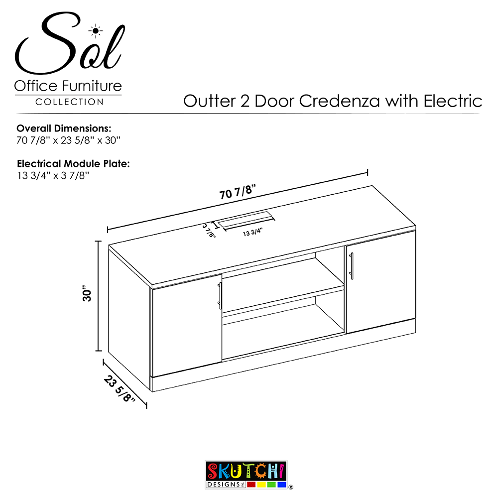 Office Credenza with Double Doors | Fully Assembled | Sol Collection | 24″Dx70″Wx30″H