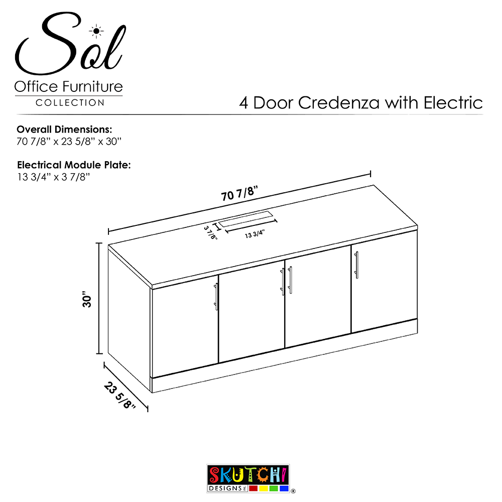 Sol Series Freestanding Credenza With Doors | Fully Assembled Storage Cabinet With Power Module | 24″Dx70″Wx30″H