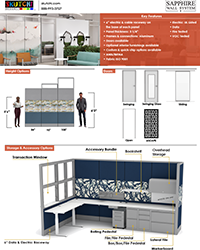 The Sapphire Wall System® offers hundreds of ways to customize its wall panels; from dozens of colored fabric options, door styles, laminate panels, and glass configurations. Let us customize a layout that fits your workflow, reduces office noise, and fits the style and motif of your corporate brand—all while meeting your specific privacy and space planning goals.