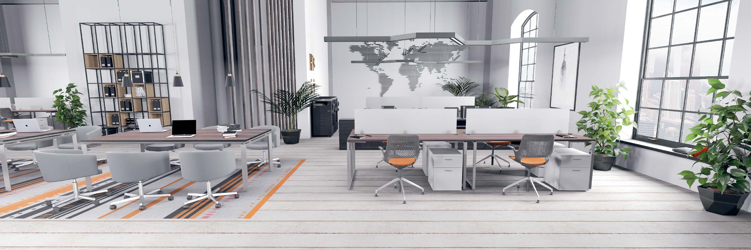 The Nova Desking System allows you to create shared areas customized to suit any décor. Let SKUTCHI Designs Inc. show you how.